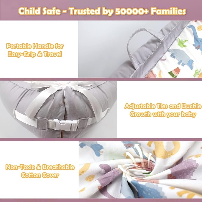 • ✅ Lightweight & Travel-Friendly – Compact and portable with convenient carry handles, this baby nest is easy to take with you wherever you go—great for around the house or weekend visits to family.
