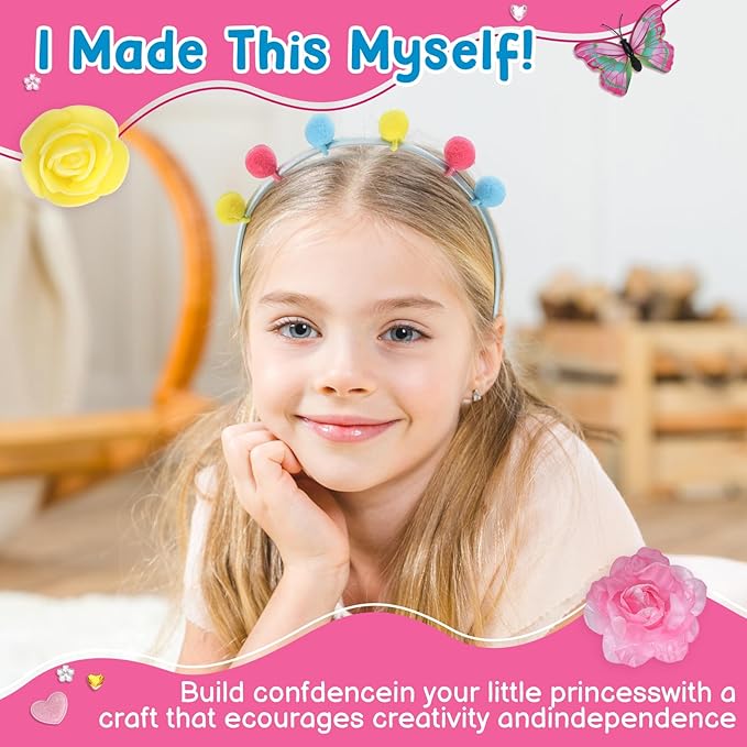 • Promotes Creative Confidence & SkillThis hands-on activity is more than just fun; it nurtures fine motor skills, artistic expression, and the pride of creating something beautiful. Watch her confidence grow with each headband she designs herself.