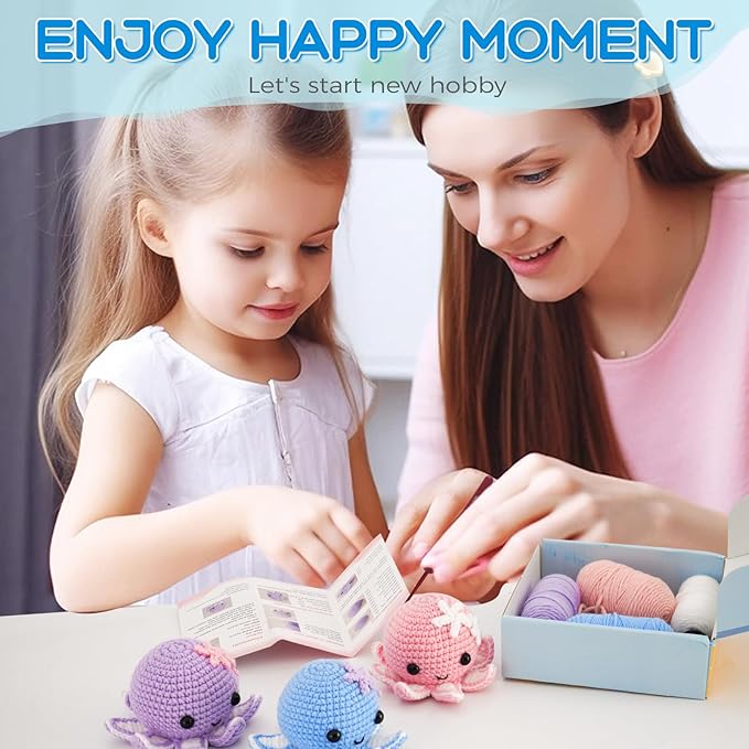 • All-In-One Crochet Starter Kit:Beginner crochet kit includes everything you need to start: yarn, stuffing, needle, eyes, buckles, crochet hooks, scissors, octopus pattern, beginner's manual and Teaching videos