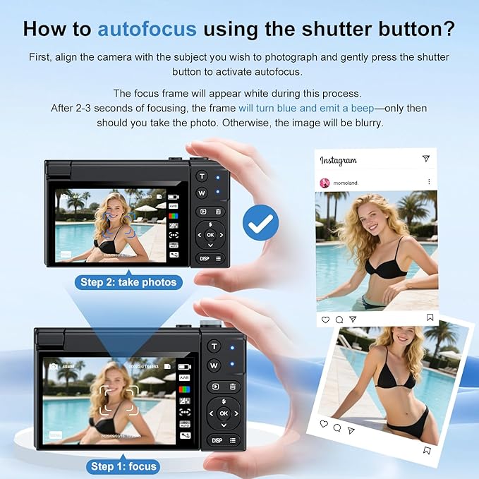 • 【180° Digital Camera with Flip Screen】Our 4k camera for photography offers a 3.0-inch IPS 180° flip screen, ideal for selfie enthusiasts and vlogging creation. Designed for travel and everyday use, this compact travel camera for pictures is built to last. Its small size and durable construction make it a reliable companion for capturing memories on the go.