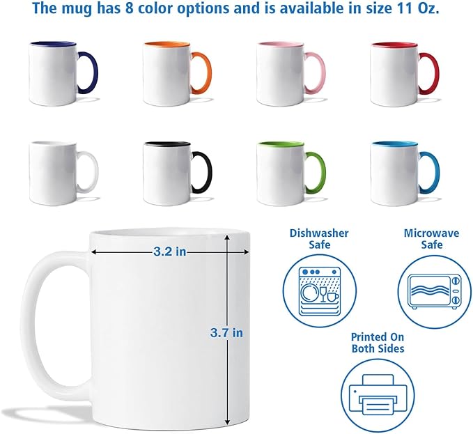 • EXCELLENT QUALITY: Made from 100% durable, glossy white ceramic. Safe for both hot and cold beverages. The design is printed on both sides using high-quality sublimation printing for long-lasting durabilityβ€”won’t scratch, peel, or fade. Microwave and dishwasher safe.
