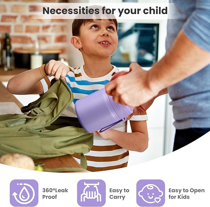 • Leak-Proof Design: Featuring an upgraded double-layer silicone seal that provides a 360Β° leak-proof guarantee. Rest assured that our leak-proof thermo food jar can fit in your lunch bag without worrying about spills. The insulated thermal food jar comes with a stainless steel spoon for your child's convenience.