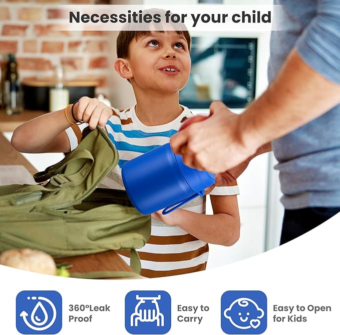 • Leak-Proof Design: Featuring an upgraded double-layer silicone seal that provides a 360Β° leak-proof guarantee. Rest assured that our leak-proof thermo food jar can fit in your lunch bag without worrying about spills. The insulated thermal food jar comes with a stainless steel spoon for your child's convenience.