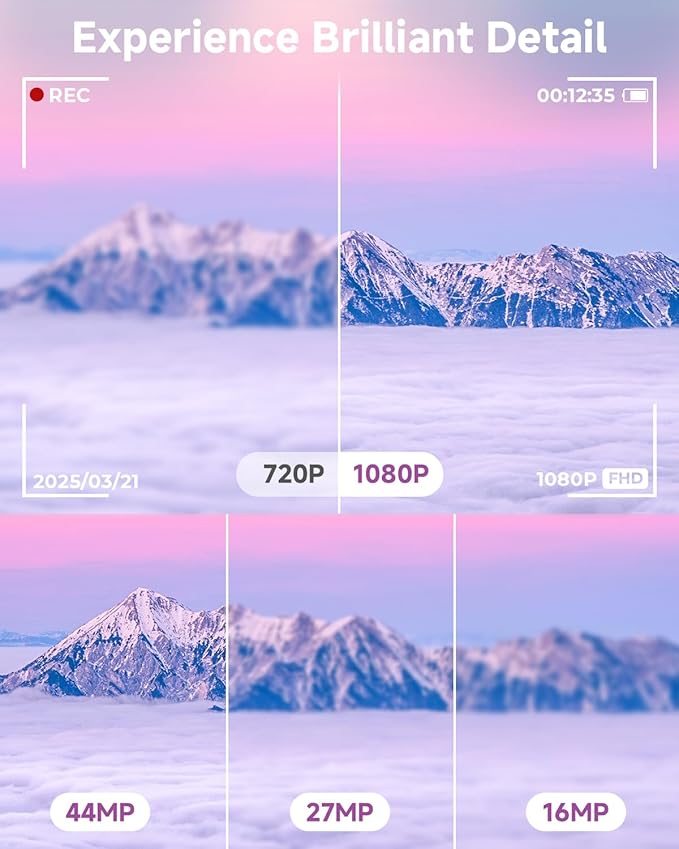• 【44MP Photo & 1080P FHD Video】:This compact digital camera is equipped with Upgrade CMOS technology ensures precise detail. Mini camera support 44MP photos and 1080P UHD video recording and features a 2.4inch Ultra HD display. It comes with a 32GB memory card to record fun and memorable moments at any time.