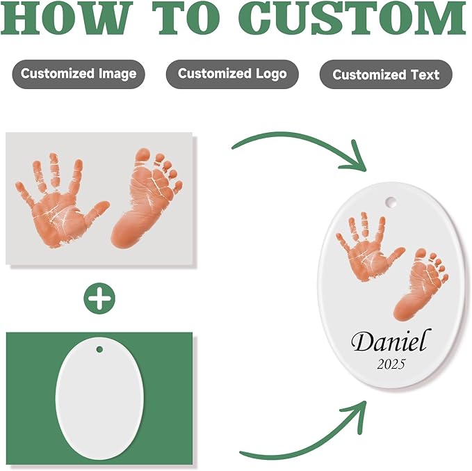 • FIRST CHRISTMAS ORNAMENT: Click "Customize Now" to upload a photo of your baby's handprint/footprint, add name and date. This personalized ornament is perfect for commemorating your baby’s first Christmas. It is suitable for both boys and girls. Personalizing your own ornament and celebrating baby's first Christmas with this cherished baby's first Christmas ornament 2025.